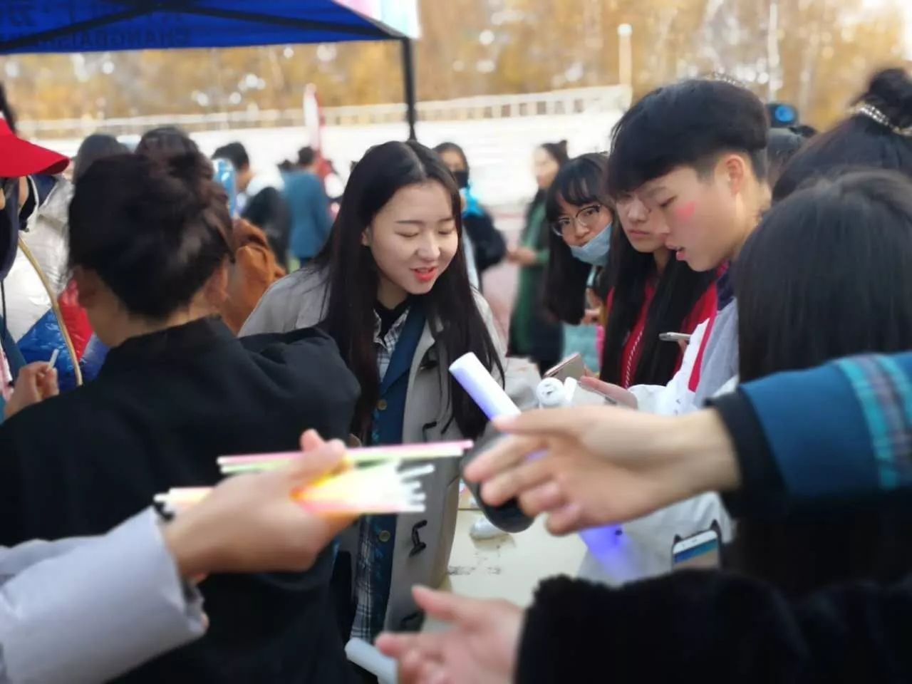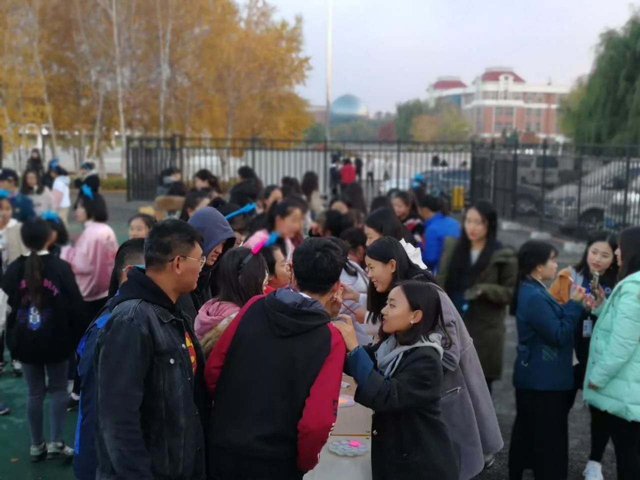 ? ? ? ?安全無害的熒光油漆,在同學們的臉上DIY青春的印記,每個人都是秋夜最亮的星。